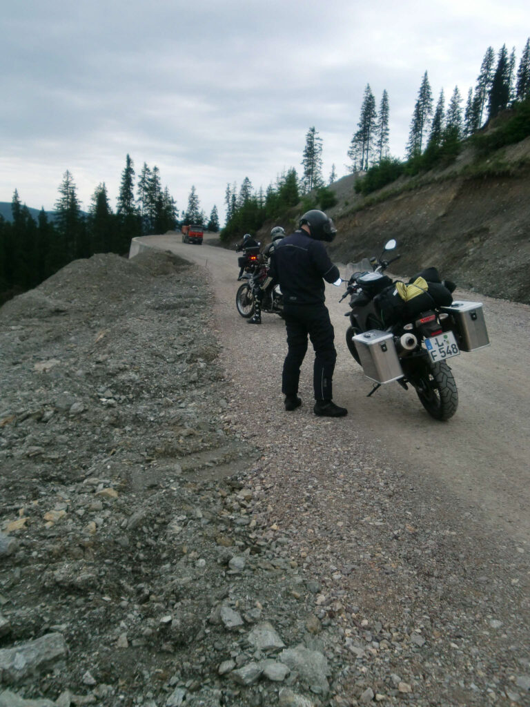 20 Kilometer Offroad münden nun auf einer kurvenreichen schlaglochfreien Straße. Das Profil unserer Reifen ist in Windeseile wieder frei. Uwe verlässt den letzten Platz und beweist die gute Eignung seiner Maschine für Bergstraßen. Ich lasse mich auch nicht weiter bremsen und folge Uwe. Einfach spitze ist es hier, ich fühle mich wie auf feinsten Strecken in Italien. Geile Schräglagen, Beschleunigen, Bremsen- alles in allem schönstes Motorrad fahren!