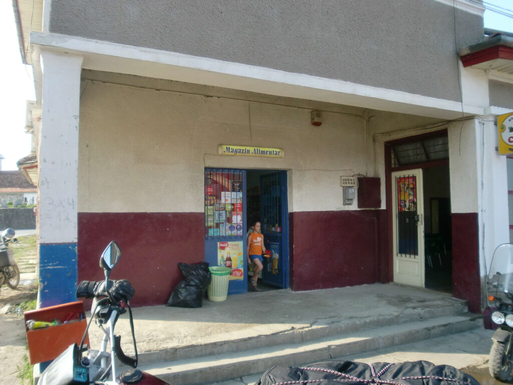 Ein kleines Stück noch auf einer perfekt ausgebauten Bundesstraße, um dann wieder auf die bekannten rumänischen „Straßen“ abzubiegen. Später wählen wir ein kleines typisches Dorf für unsere Mittagsrast. Im Örtlichen Tante Emma Laden suchen wir uns Speisen und Getränke aus. Wie wir wissen, sind unsere Lei knapp. Da eine Bezahlung mit Euro sonst nie ein Problem ist, machen wir uns darüber auch keine weiteren Gedanken. Als ich den Kohlenhydrathaufen bezahlen will, lehnt die nette ältere Verkäuferin meine Euro ab. Mein Verhandlungsgeschick reicht auch nicht, um sie für meine Devisen zu begeistern. Am Ende lasse ich die gute Frau in „Konsum- Rentnerart“ meine letzten LEI aus dem Portmonee ziehen. Fast den ganzen Einkauf müssen wir zurück gehen lassen, nur eine kleine Apfeltasche bleibt am Ende übrig! Wir teilen uns den Einkauf brüderlich und trinken statt kalter Cola unser warmes Wasser. Es ist eh wieder unheimlich heiß und so stillt die kleine Apfeltasche zusammen mit ein paar Waffelreserven unseren Hunger. Kurz vor der Weiterfahrt kommt ein großer glatzköpfiger junger Mann auf uns zu. Er sieht aus wie der örtliche Drogenhändler und fragt, ob wir Euro in Lei tauschen wollen. Wir lehnen aus Trotz und Sättigungsgefühl dankend ab.