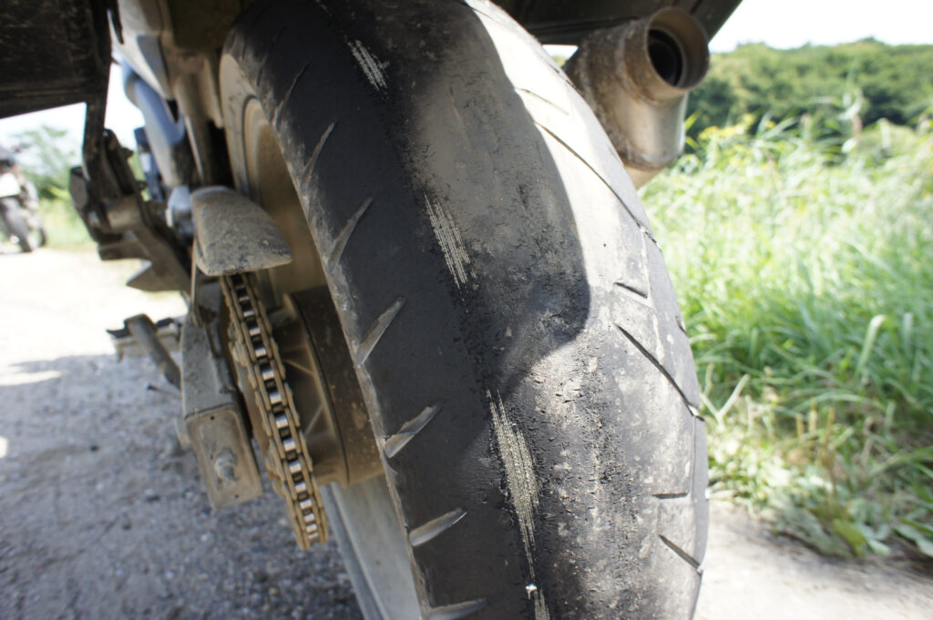 An einer der nächsten Kreuzungen schweift mein Blick über Uwes Hinterrad. Ein Schreck durchfährt mich!