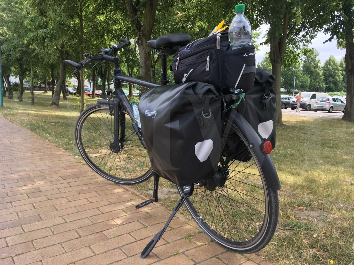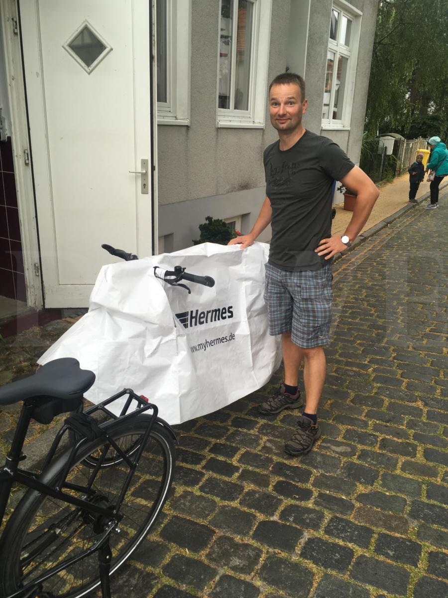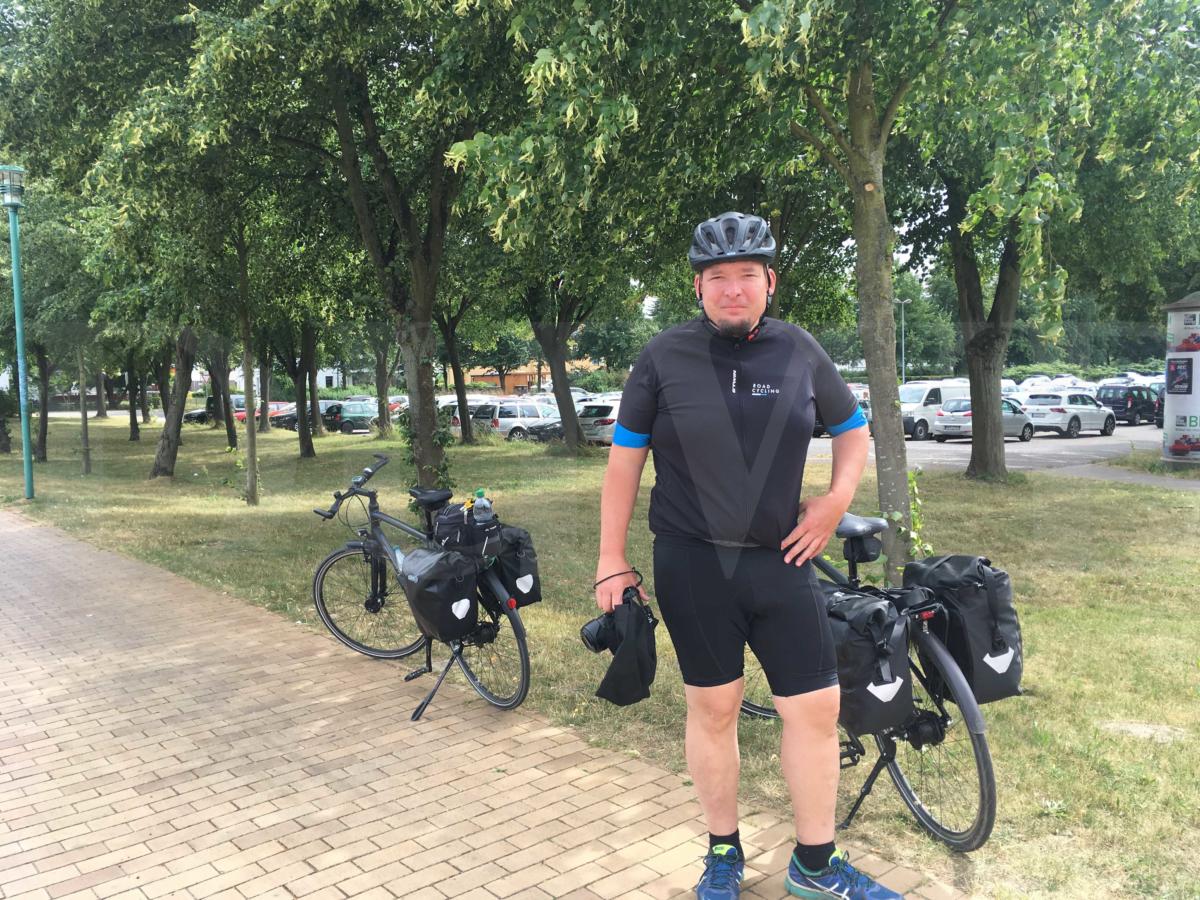 Gut startet der Montag, ausgeschlafen und entspannt beim reichhaltigen Frühstück. Noch vor um zehn habe ich mein Fahrrad von der Versandverpackung befreit und auch die Gepäcktaschen sind an unseren Rädern montiert. Unsere selbst auferlegte Regel bis zum ersten Stopp mindestens 20 km zu fahren, können wir heute leider nicht einhalten. Uwe’s Fauxpas von gestern (vergessener Helm) zwingt uns etwas unsere Route anzupassen. Die Anpassung führt uns durch ganz Rostock, mit Radtour hat das wenig zu tun. Wir stehen an jeder Ampel und durchkreuzen mehrere Wohngebiete.