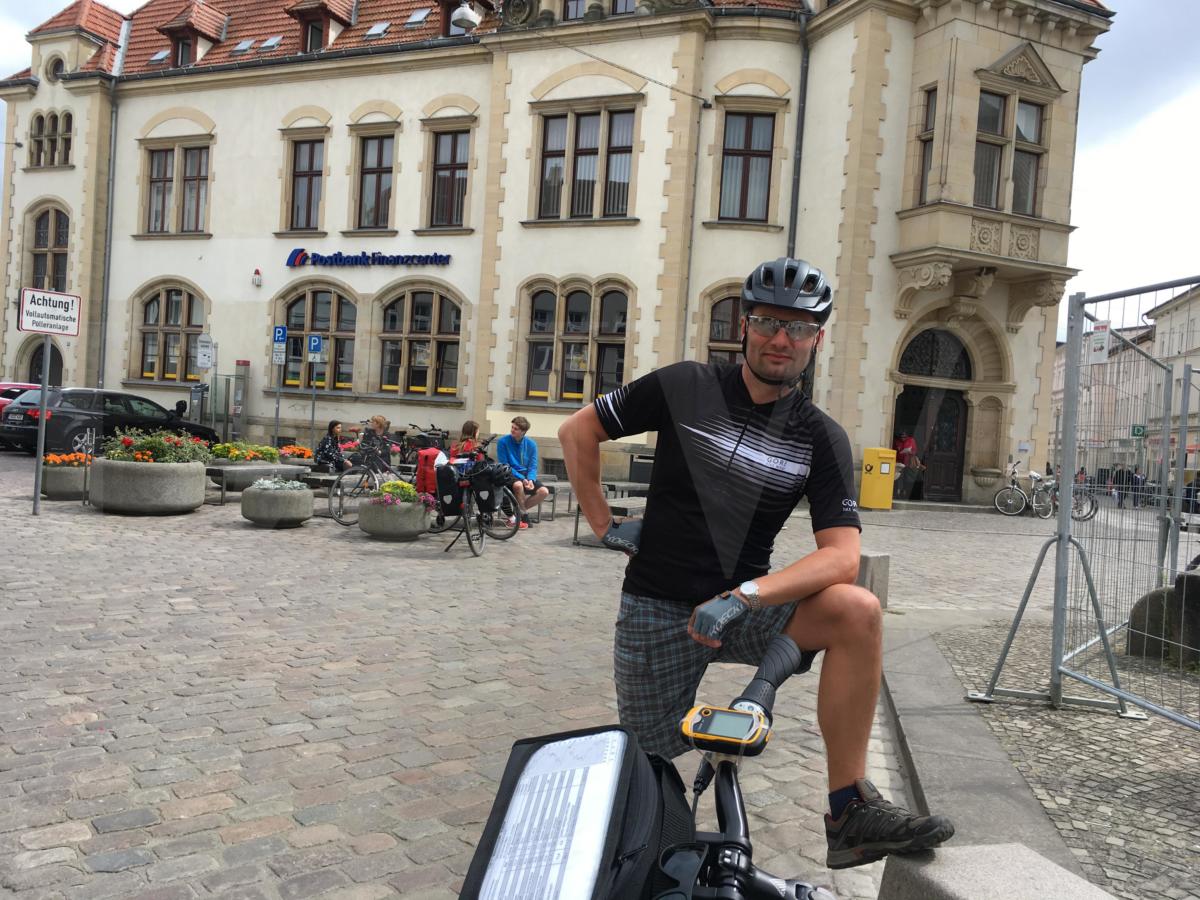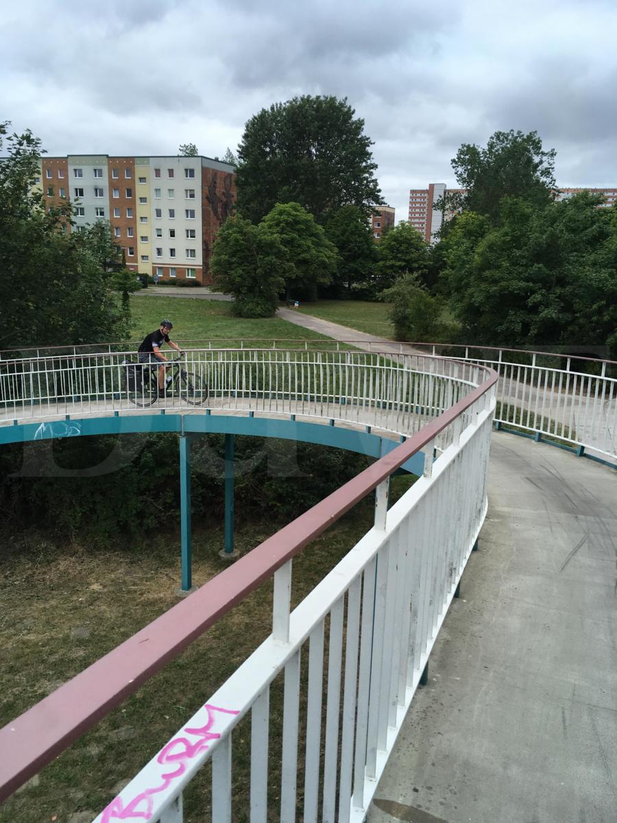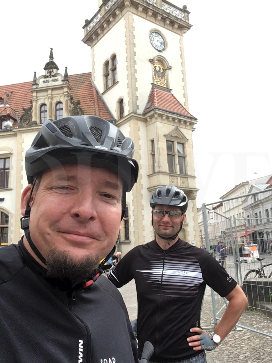 Gut startet der Montag, ausgeschlafen und entspannt beim reichhaltigen Frühstück. Noch vor um zehn habe ich mein Fahrrad von der Versandverpackung befreit und auch die Gepäcktaschen sind an unseren Rädern montiert. Unsere selbst auferlegte Regel bis zum ersten Stopp mindestens 20 km zu fahren, können wir heute leider nicht einhalten. Uwe’s Fauxpas von gestern (vergessener Helm) zwingt uns etwas unsere Route anzupassen. Die Anpassung führt uns durch ganz Rostock, mit Radtour hat das wenig zu tun. Wir stehen an jeder Ampel und durchkreuzen mehrere Wohngebiete.