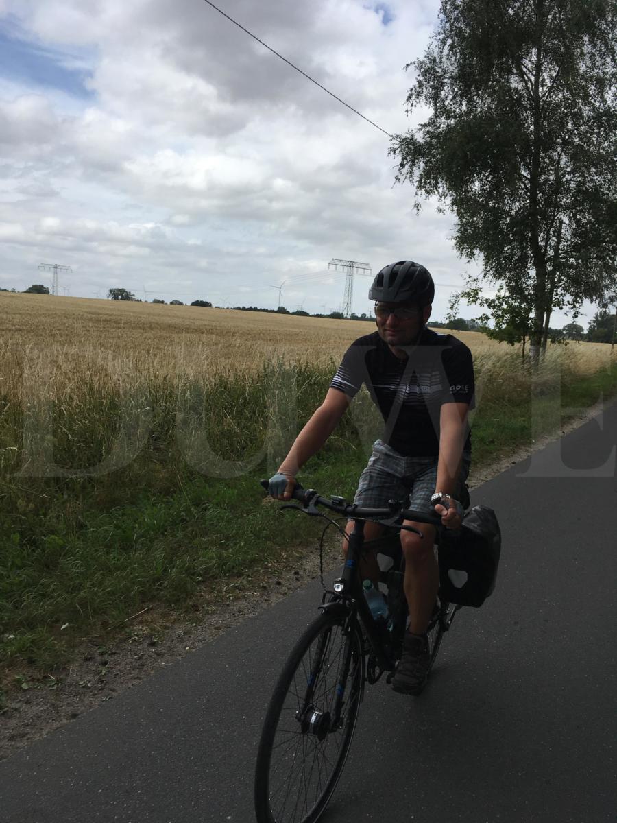 20km stehen mittlerweile auf dem Tacho, Uwe hat einen neuen Helm und endlich sind wir so unterwegs, wie man sich das für eine solche Radtour vorstellt. Wir passieren Pferdekoppeln, große Felder und durchfahren diverse Wälder. Unser Plan nicht wie die Masse der Radler zur Ostsee sondern von ihr weg zu fahren erweist sich perfekter Coup. Der Wind beschleunigt uns zu ungeahnten Geschwindigkeiten, selbst bergauf geht der Tacho selten unter 25km/h. Die uns entgegen kommenden Radwanderer sehen weniger entspannt aus, der obligatorische Gruß unter „uns“ Radwanderfreunden fehlt aber nur selten.