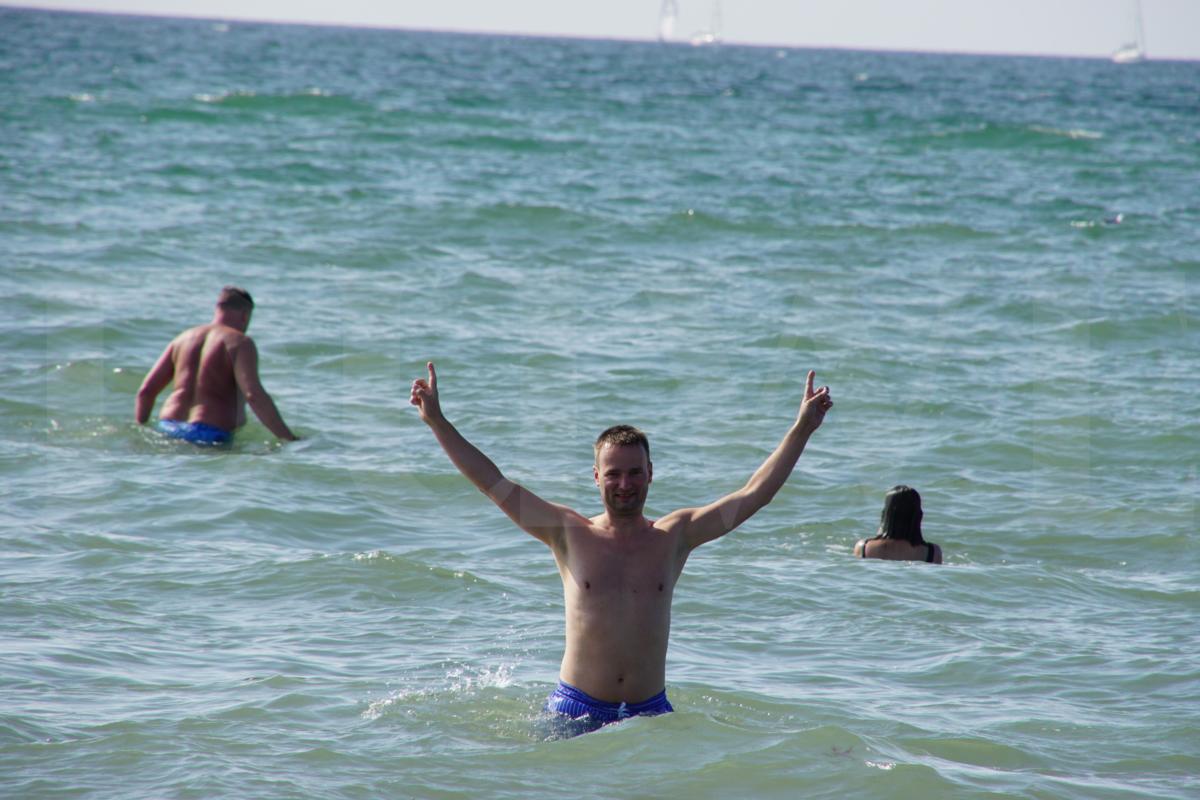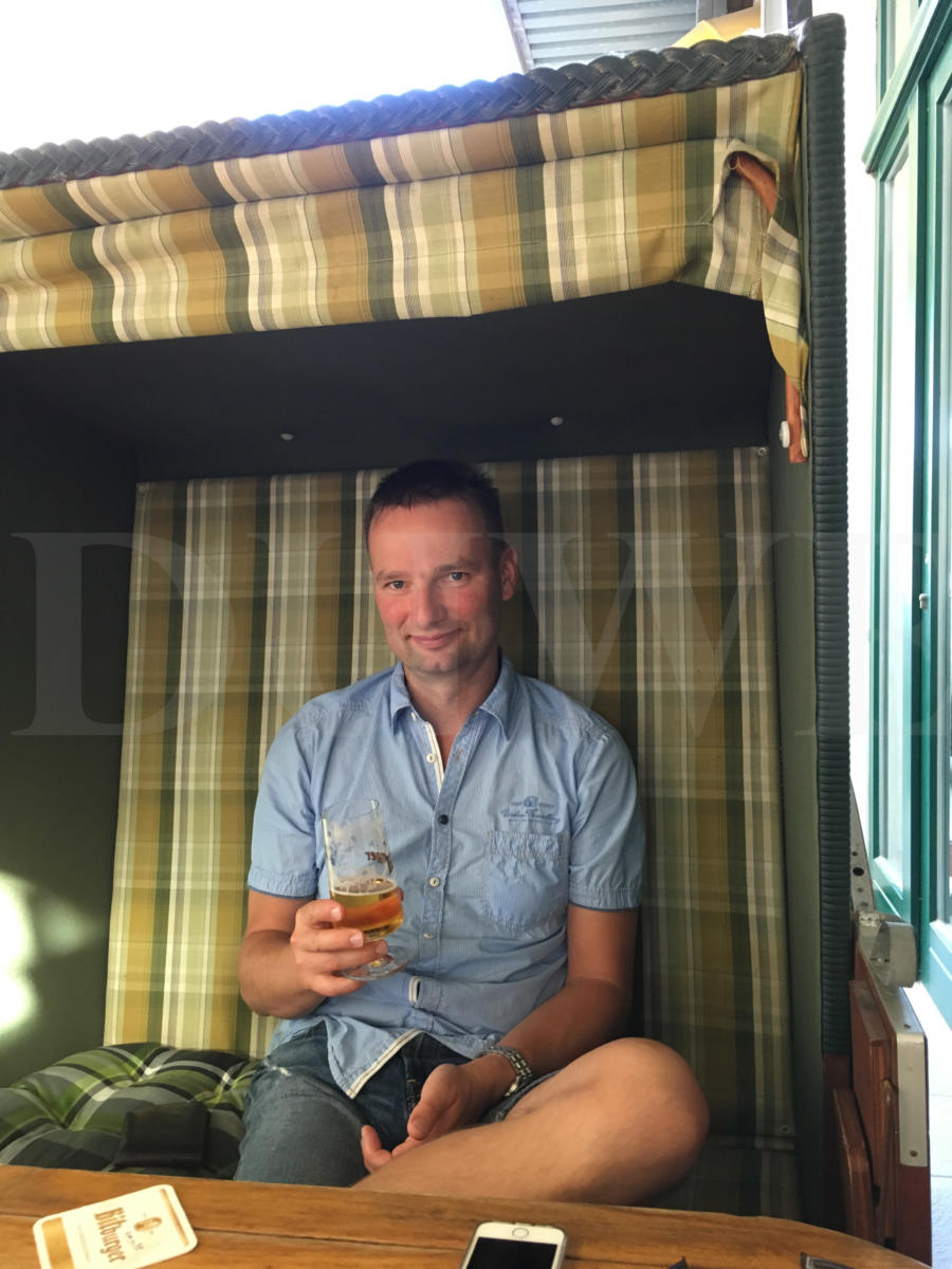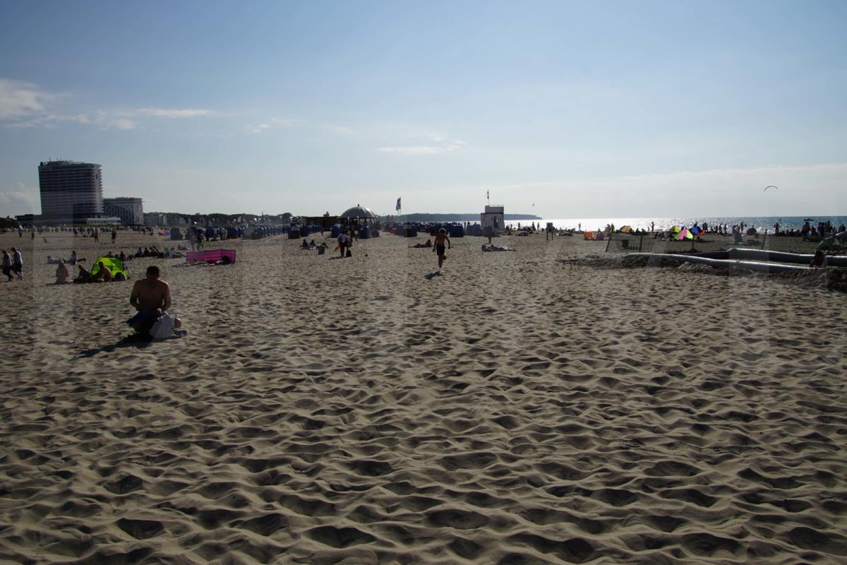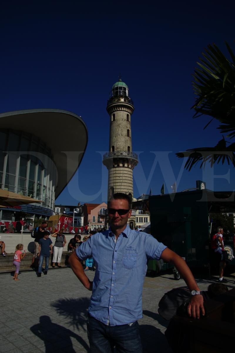 Die 150 m zum Hotel Belvedere sind schnell absolviert. Direkt am Strom liegt unser Hotel. Menschenmassen drängen sich auf der Promenade. Wir checken ein und erfahren, das auch Dennis Fahrrad gut angekommen ist. Wir sind kurz im Hotel um die Klamotten abzuwerfen. Dann geht es ab an die Promenade Richtung Strand. Vom Wasser aus werden auf alten Fischkuttern allerlei Leckereien angeboten. Bis zur Mündung des Stroms in die Ostsee ist ganz schön viel los. Am Strand werden gerade jede Menge Zelte und eine Bühne aufgebaut. Heute Abend geht die Warnemünder Woche los, wie wir später erfahren. Auch am Strand herrscht reges Kommen und Gehen. Da wir unser Hab und Gut nicht gefährden wollen, gehen wir nacheinander schwimmen. Dennis, nicht gerade als Wasserratte verschrien, macht den Anfang. Ich mache mit der Kamera ein paar Schnappschüsse von ihm, komme mir aber am Strand schon ein bisschen komisch vor, mit der Riesen Kamera Fotos zu schießen. Für seine Verhältnisse ist er dann auch ziemlich lang in der 18 Grad kalten Ostsee. Danach springe ich in die Fluten und genieße das salzige Wasser und die herrlichen Wellen. Auf dem Rückweg, vorbei am Leuchtturm und dem Teepott suchen wir uns eine gemütliche Gaststätte in der wir von der Kellnerin etwas derb aber nicht unfreundlich begrüßt werden. Es gibt Fisch und andere feine Sachen die satt machen. Nach dem Essen zieht es uns wieder auf die Promenade in Richtung Hotel. Langsam werden auch die Menschenmassen etwas weniger. Wir beschließen, noch einen Abstecher zur anderen Seite des Stroms zu machen. Vor dem S-Bahnhof sind ein paar Buden aufgebaut. Wahrscheinlich für das bald beginnende Fest. An einem Barwagen lassen wir uns noch zwei feine Holsten schmecken. Dennis ist noch nicht müde und möchte nochmal zur Bühne am Strand. Mir fallen fast die Augen zu, so trennen wir uns. Ich verschwinde im Hotel und Dennis zieht nochmal von dannen. Schnell fallen mir die Augen zu….