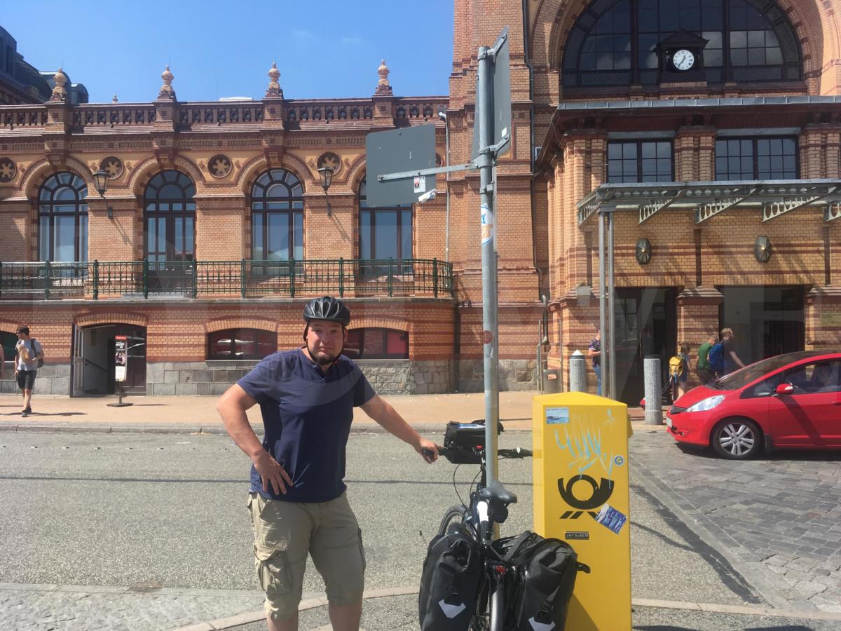 Unser erster Fahrradurlaub startet recht frisch. Es sind 17 Grad, als ich mit dem Fahrrad voller Gepäck zum Bahnhof düse. Mit dem Intercity geht es heute über Schwerin nach Rostock. Der Radtransport im IC ist nicht ganz so einfach wie in der S-bahn oder im RegionalExpress. Ein Extra Fahrradabteil wartet am Ende des Zuges, fast schon außerhalb des Bahnhofs. Aber relativ zügig ist das Fahrrad verstaut.