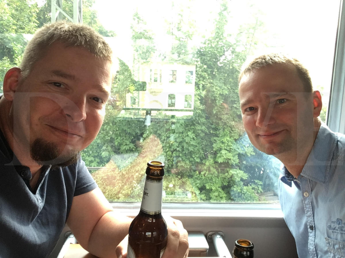 Dennis Fahrrad ging ein paar Tage vorher auf die Reise per Hermes. Es gab leider nicht genug Fahrradplätze im Zug.Irgendwann kommt er dann auch. Schwer beladen mit seinen Taschen und zwei Bechern Kaffee, in der Hand balancierend. Super Idee. So langsam wird es Zeit zum Abschied nehmen von der Liebsten am Bahnsteig.
